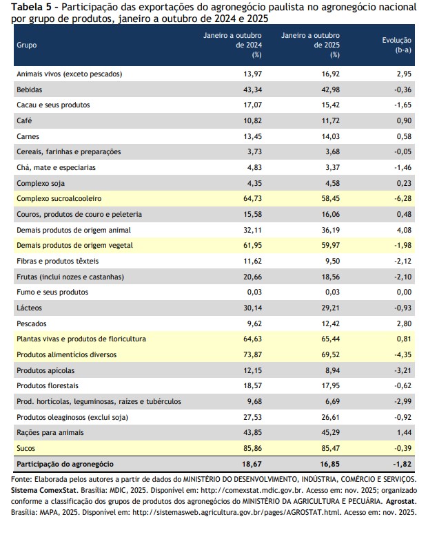 de 2025 na comparação com igual período do ano anterior, o setor paulista