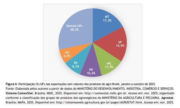 Esses seis estados somados representam 71,7% das exportações totais do agro