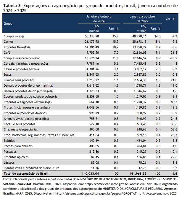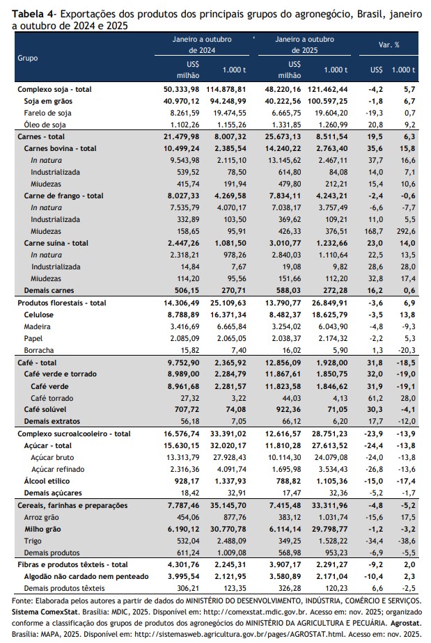 brasileiro nos dez primeiros meses de 2025. Quanto à