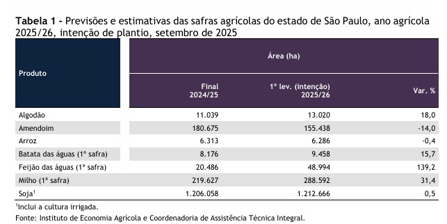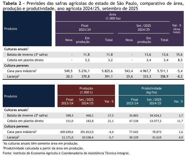 2025/26 da agricultura paulista apurado no levantamento de setembro de 2025,