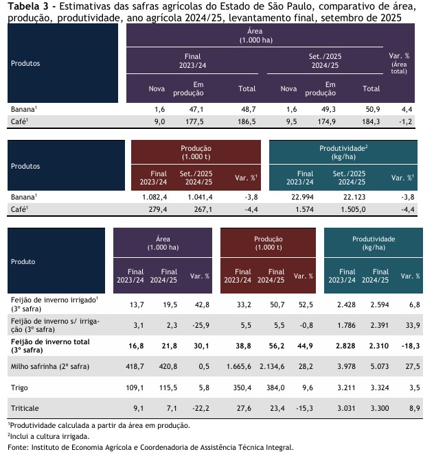 levantamento de setembro de 2025 foram obtidos os números finais da cultura de