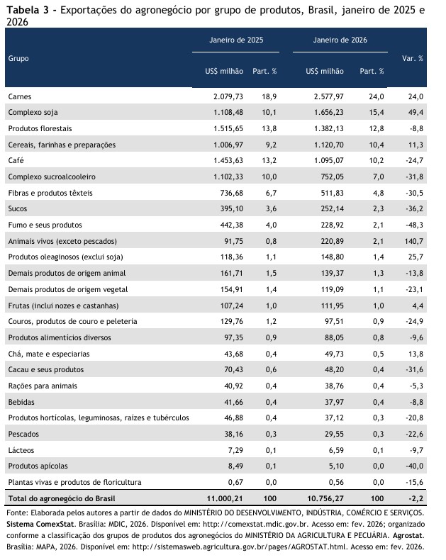 análise setorial do agronegócio3, em janeiro de 2026, na comparação